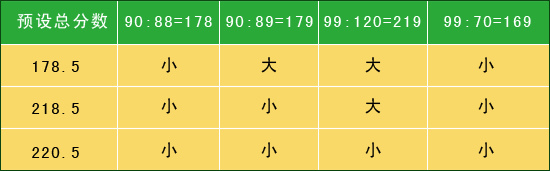 选择“小分”:预期比赛总分 < 215.5
