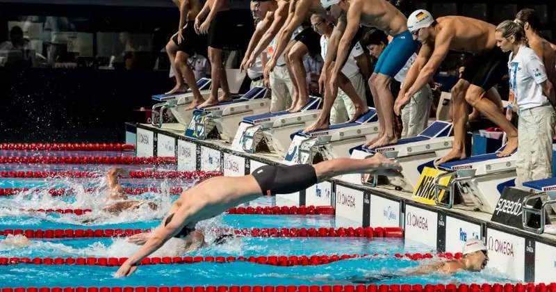 游泳接力项目竞争激烈:团队配合与极限速度的较量